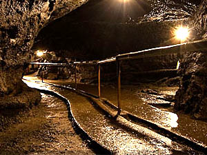 富岳風穴は、1140年前に、富士山の側火山長尾山の大爆発で流れ出した青木ヶ原溶岩流でできた溶岩洞穴です。 南北にのびるおよそ110mの主洞と、東西にのびるおよそ80mの大規模な支洞からなる横穴式で、入口は直径5.4m、総延長201m 天井までの高さは、入口から43mの地点で5.4m 最高部は8.7mとなっています。